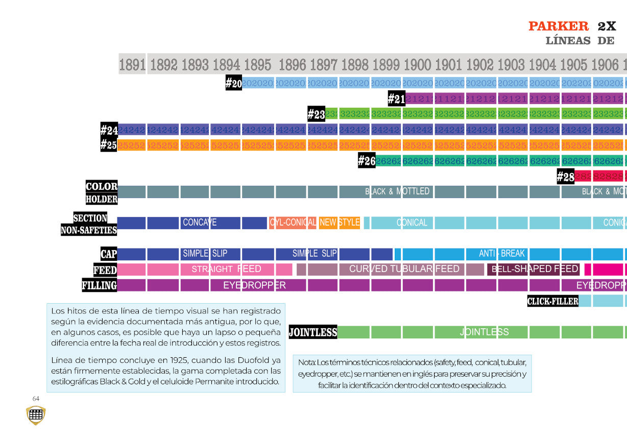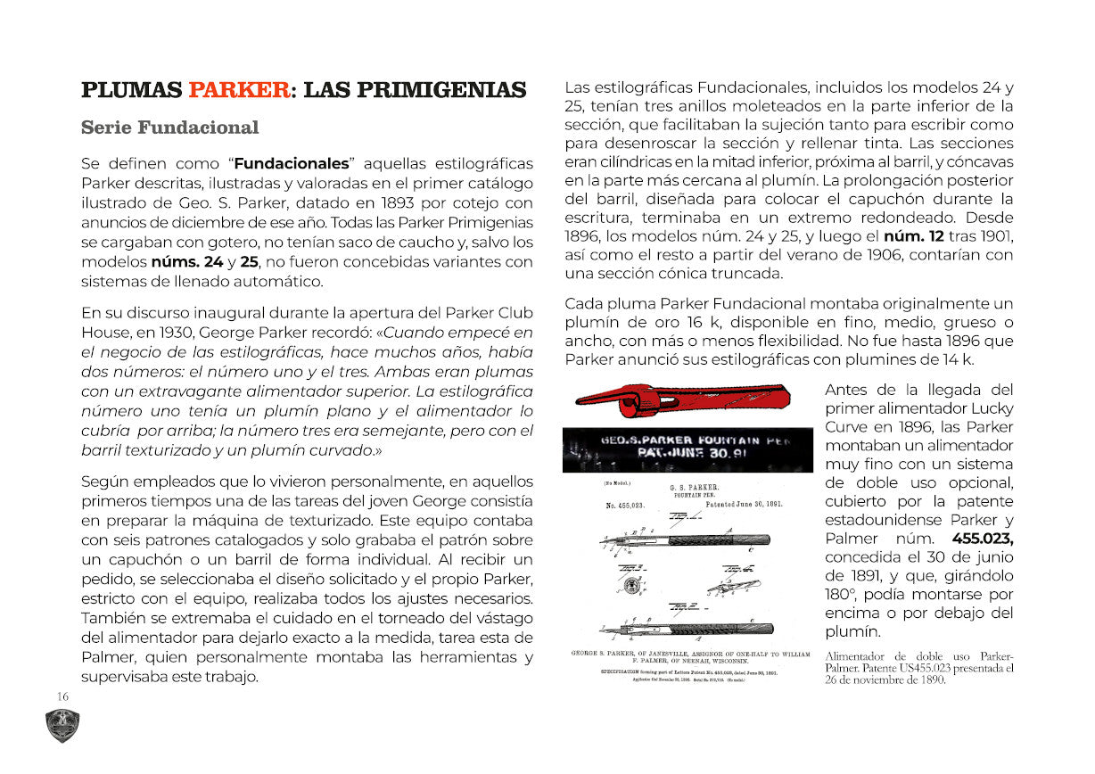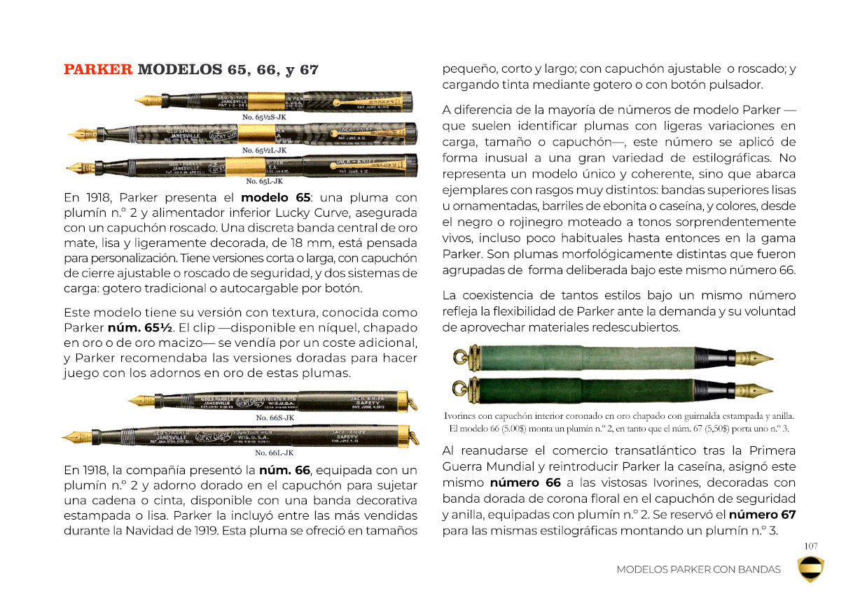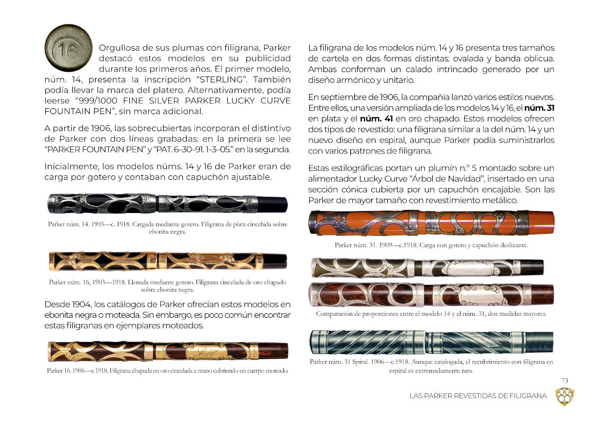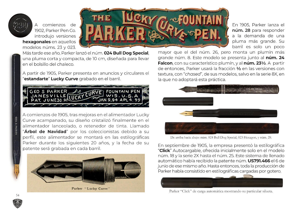 La documentación de todos los números de modelo, incluidos aquellos considerados “no registrados” o “saltados”, aclara preguntas largamente marginadas sobre esta numeración, junto con patentes originales e información acerca de los sistemas de llenado empleados por Parker y la evolución del alimentador Lucky Curve.