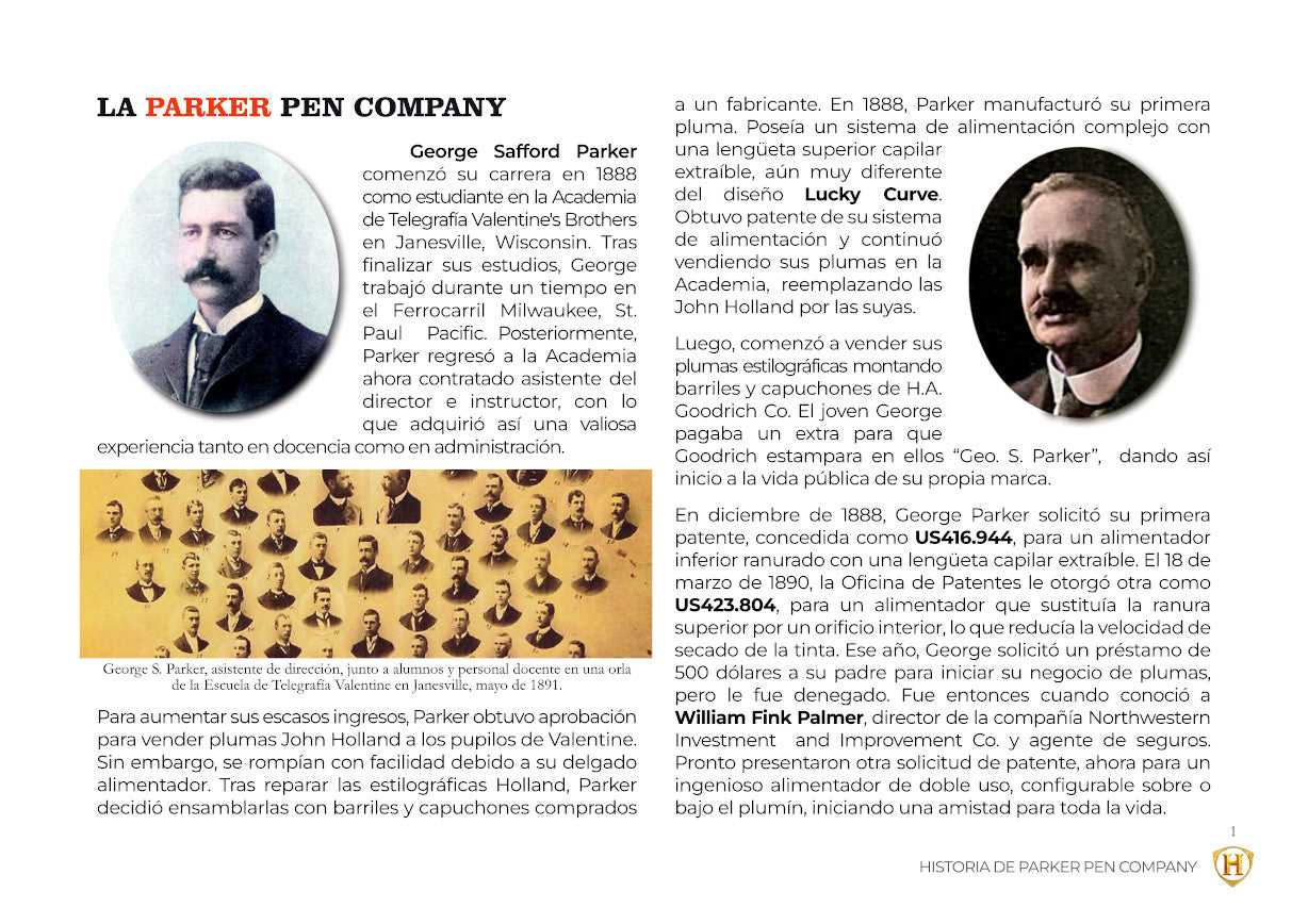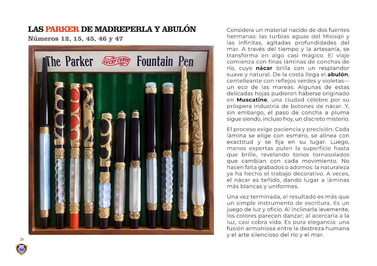 Descubra la guía autorizada jamás publicada sobre estilográficas Parker, enriquecida con excepcionales imágenes de la era previa a las Duofold. Esta enciclopedia presenta, por vez primera, un catálogo completo y detallado de todos los modelos fabricados por Parker Pen Company en Janesville, Wisconsin, durante la menos conocida época previa a la Duofold.