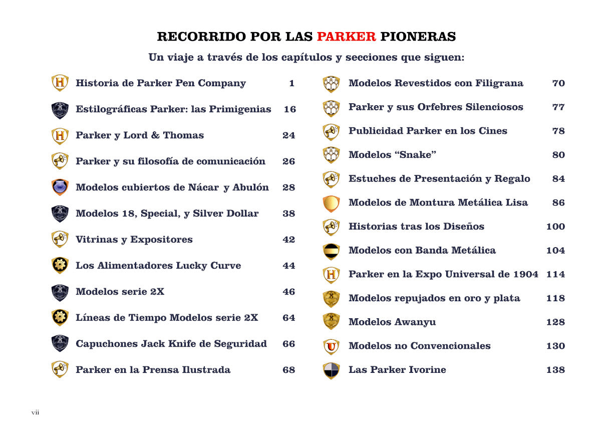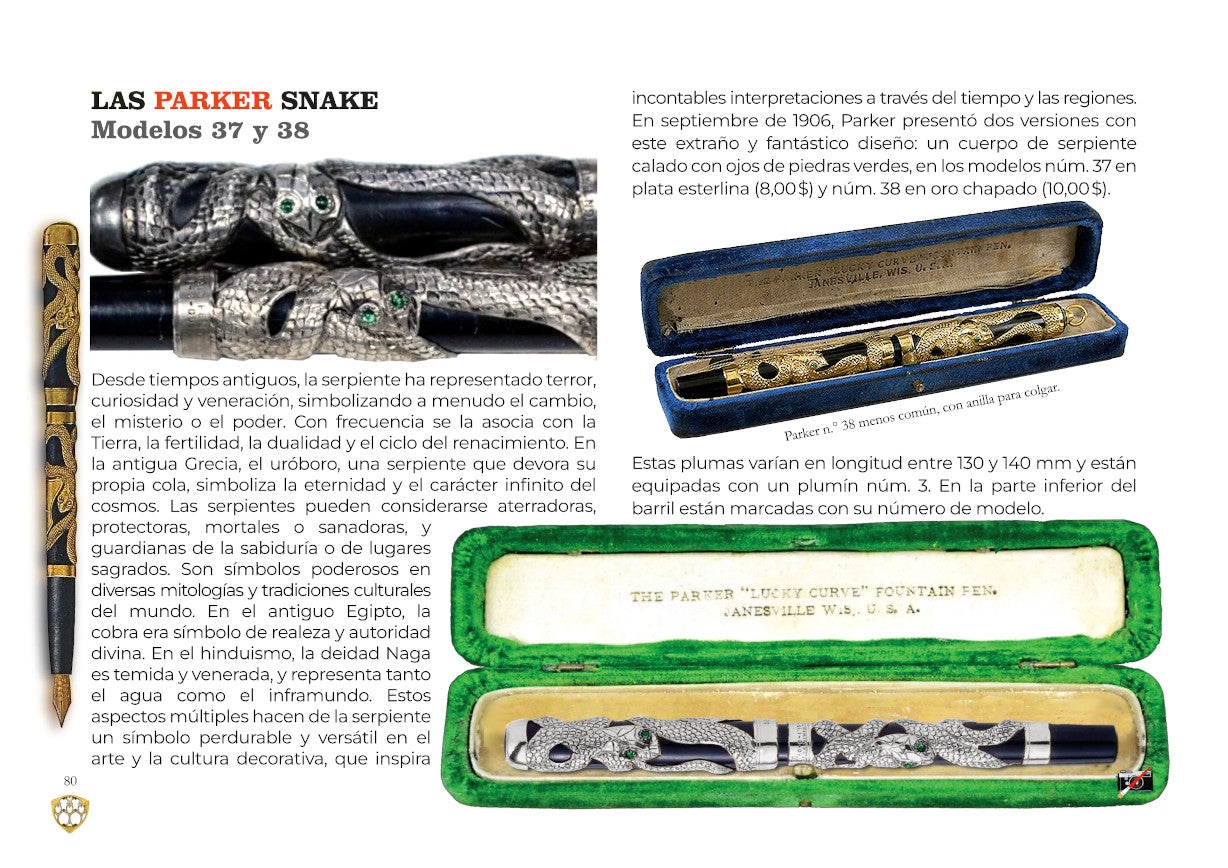 Esta obra muestra una gran cantidad de fotografías de estilográficas en alta resolución e inédito material gráfico. Incluye más de 400 estilográficas Parker fotografiadas, mostrando una variedad de diseños e innovaciones técnicas que corresponden a una antología de 147 números de modelos distintos. La colección comienza con las primeras estilográficas Parker de 1891. La presentación incluye no solo los numerosos modelos sino sus distintas versiones, asegurando una exploración visual completa de las icónicas estilográficas Parker pre-Duofold.